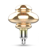 Лампа BD - декоративная фигурная лампа с колбой типа BD. Диаметр лампы варьируется и может быть достаточно большим (160 - 180 мм). Современный экономичный светодиодный источник света в корпусе ретро-дизайна. Вместо вольфрамовой спирали используется светодиодный нитевой излучатель — филамент. Лампы обладают низкой цветовой температурой и это в сочетании с колбой из золотистого стекла,обеспечивает лампам необыкновенно теплое свечение. Винтажные лампы данной формы подходят для создания интерьеров в ретро стиле и для светильников в стиле лофт. Их широко используют для декорирования ресторанов, магазинов, баров и жилых помещений. Она предназначена для открытых светильников и прозрачных плафонов, которые позволят разглядеть ее дизайнерское оформление:
