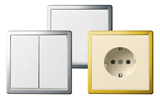 НОВИНКА. Вставки с поверхностями из глянцевого хрома для новых возможностей комбинирования, например, с Gira Esprit или новыми хромовыми вариантами в серии выключателей Gira ClassiX и дизайнерской линии ClassiX Art.
