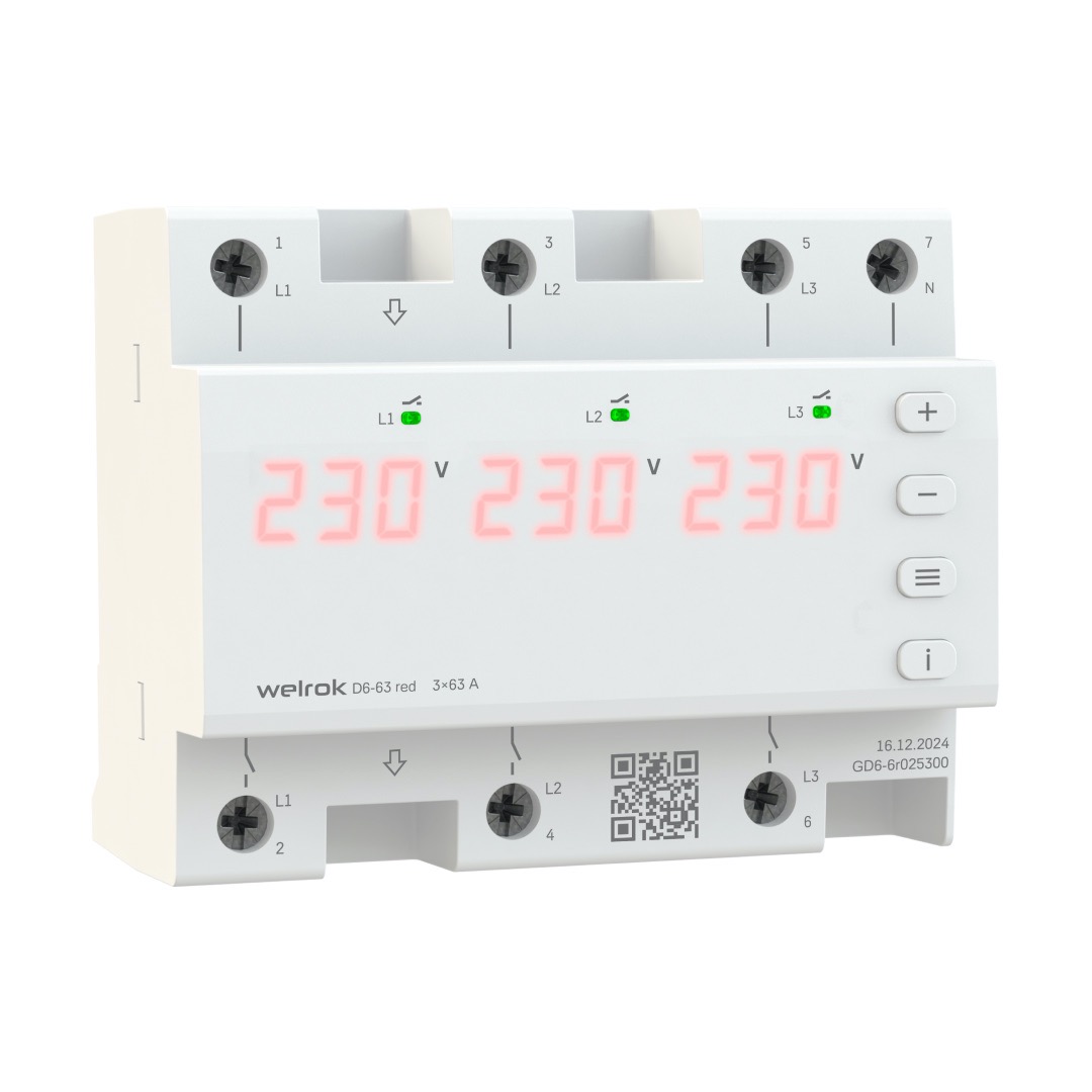 • Реле напряжения с контролем тока 3P+N KARAT, 3НО, 63А, 220В AC