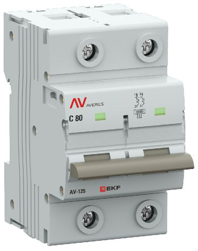 • Автоматический выключатель AV-125 AVERES, 1 полюс, 80А, C, 10 кА