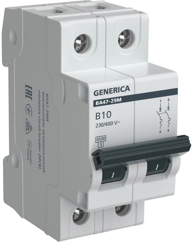 Автоматический выключатель ВА47-29 Generica, 1 полюс, 10А, B, 4, 5 кА