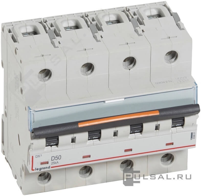 Автоматический выключатель DX³, 4 полюса, 50А, D, 25 кА