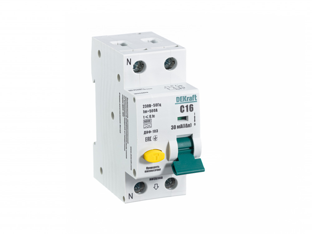 Автомат дифференциального тока ДИФ-103 ДИФ-103, 1+N полюс, 16А, C, 6 кА, тип - A,