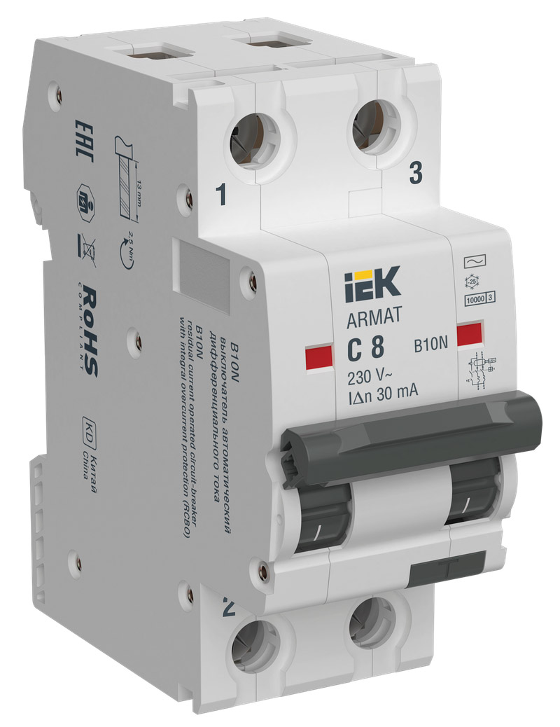 Автомат дифференциального тока Модульное и клеммы, 1+N полюс, 10А, C, 6 кА, тип - AC,