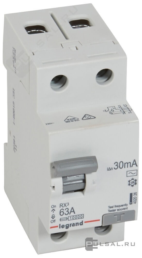 • Выключатель дифференциального тока (УЗО) RX³, 2 полюса, 63А, тип - AC, 300 мА