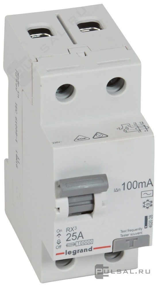 • Выключатель дифференциального тока (УЗО) RX³, 2 полюса, 25А, тип - AC, 300 мА