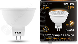Elementary, цоколь - GU5.3, мощность - 7Вт, световой поток - 530Лм, цветовая температура - 3000К, не диммируется, 13517, Gauss