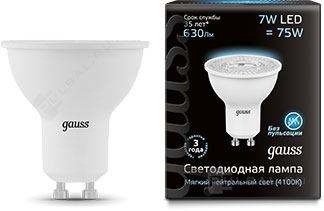 Elementary, цоколь - GU10, мощность - 7Вт, световой поток - 550Лм, цветовая температура - 4100К, не диммируется, 13627, Gauss