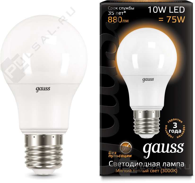 Black, цоколь - E27, мощность - 9.5Вт, световой поток - 890Лм, цветовая температура - 3000К, не диммируется, 103102110, Gauss