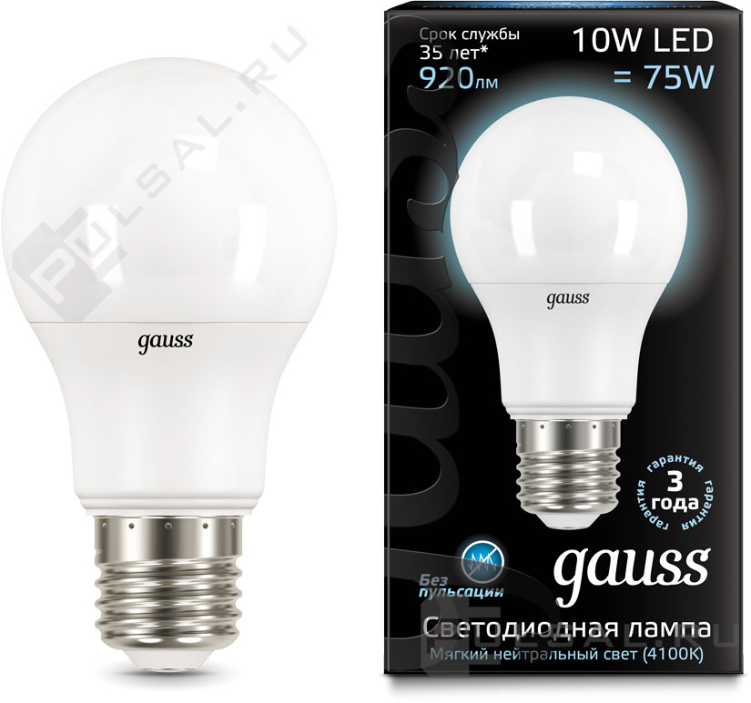 Black, цоколь - E27, мощность - 10Вт, световой поток - 920Лм, цветовая температура - 4100К, диммирование шаговое, 102502210-S, Gauss