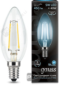 Black, цоколь - E14, мощность - 5Вт, световой поток - 450Лм, цветовая температура - 4100К, не диммируемая, 103801205T, Gauss