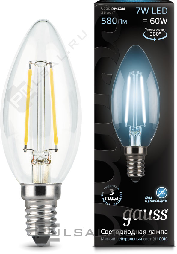 Black, цоколь - E14, мощность - 7Вт, световой поток - 590Лм, цветовая температура - 4100К, диммируется, 105101207-D, Gauss