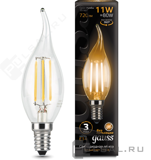 Black, цоколь - E14, мощность - 11Вт, световой поток - 720Лм, цветовая температура - 2700К, не диммируется, 105801111, Gauss