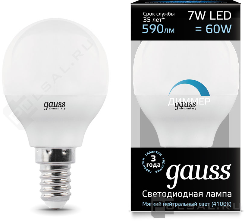Black, цоколь - E14, мощность - 7Вт, световой поток - 590Лм, цветовая температура - 4100К, диммируется, 103101207-D, Gauss