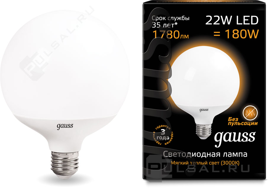 Black, цоколь - E27, мощность - 16Вт, световой поток - 1360Лм, цветовая температура - 3000К, не диммируется, 105102116, Gauss