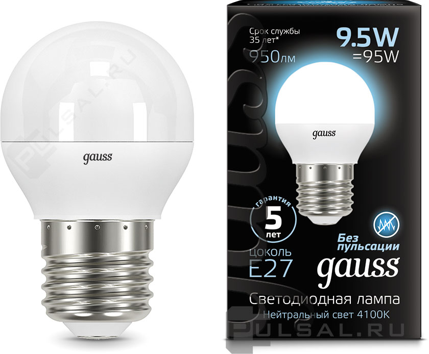 Black, цоколь - E27, мощность - 10Вт, световой поток - 920Лм, цветовая температура - 4100К, не диммируется, 102502210, Gauss