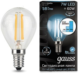 Black, цоколь - E14, мощность - 7Вт, световой поток - 590Лм, цветовая температура - 4100К, диммируется, 105101207-D, Gauss
