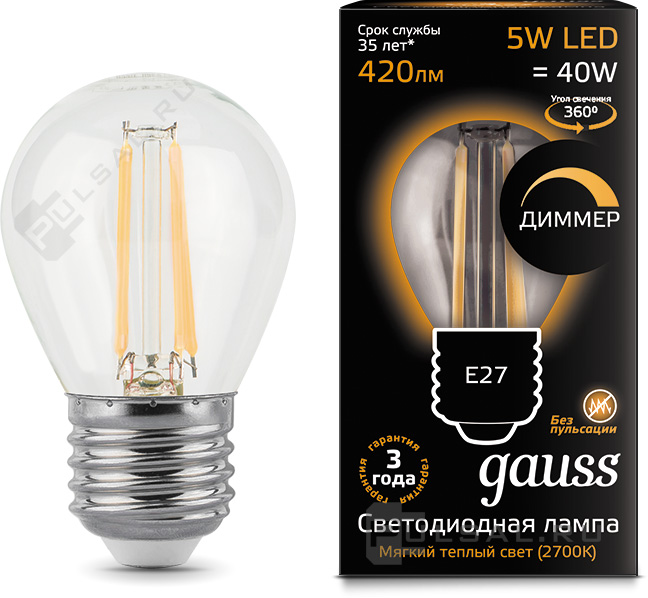 Black, цоколь - E27, мощность - 6.5Вт, световой поток - 520Лм, цветовая температура - 2700Кцветовая температура - 3000К, не диммируется, 103102107, Gauss