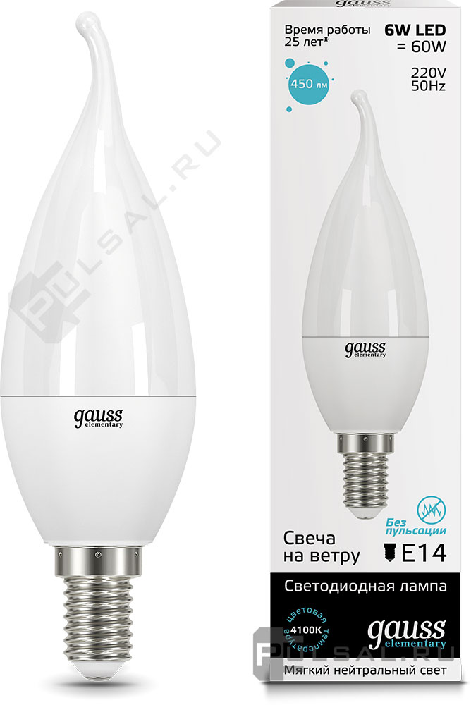 Elementary, цоколь - E14, мощность - 8Вт, световой поток - 540Лм, цветовая температура - 4100К, не диммируется, 34128, Gauss