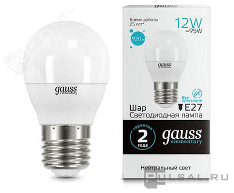 Elementary, цоколь - E27, мощность - 12Вт, световой поток - 1150Лм, цветовая температура - 4100К, не диммируется, 23222, Gauss