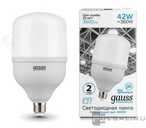 Elementary, цоколь - E27, мощность - 50Вт, световой поток - 4400Лм, цветовая температура - 4000К, не диммируется, 63225, Gauss