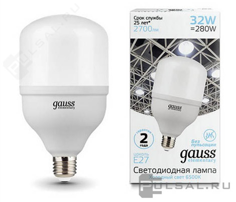 Elementary, цоколь - E27, мощность - 30Вт, световой поток - 2390Лм, цветовая температура - 6500К, не диммируется, 73239, Gauss