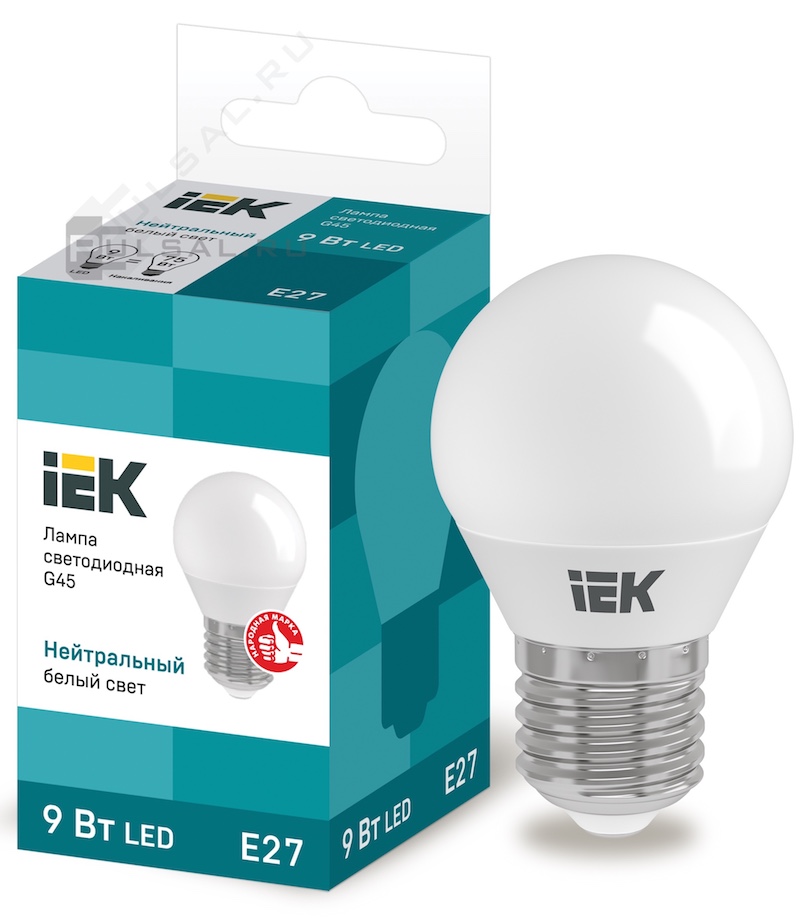 Лампы IEK, цоколь - E27, мощность - 9Вт, световой поток - 810Лм, цветовая температура - 4000К, не диммируется, LLE-A60-9-230-40-E27, IEK