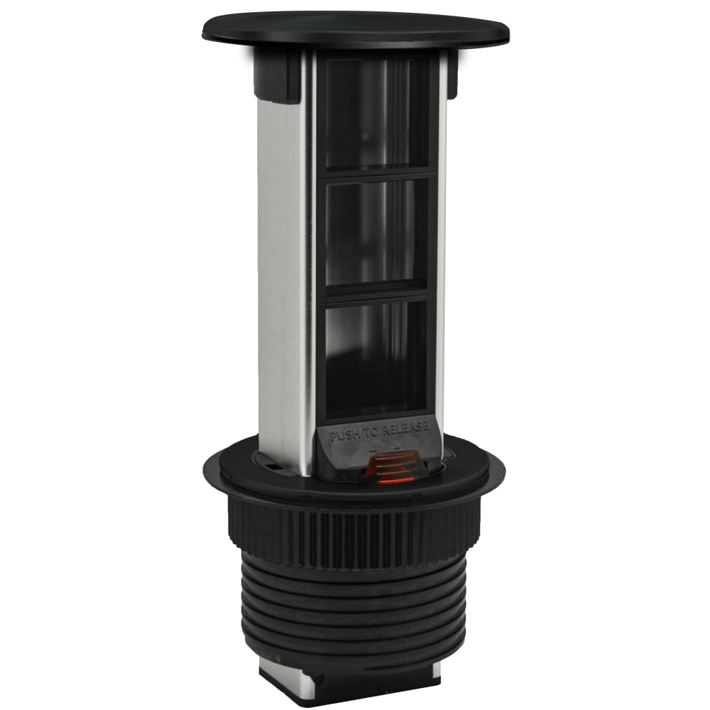 Встраиваемый выдвижной теле-блок Vertical Лючки DDSB, для столов и мебели, 3 поста, 6 модулей, цвет - антрацит