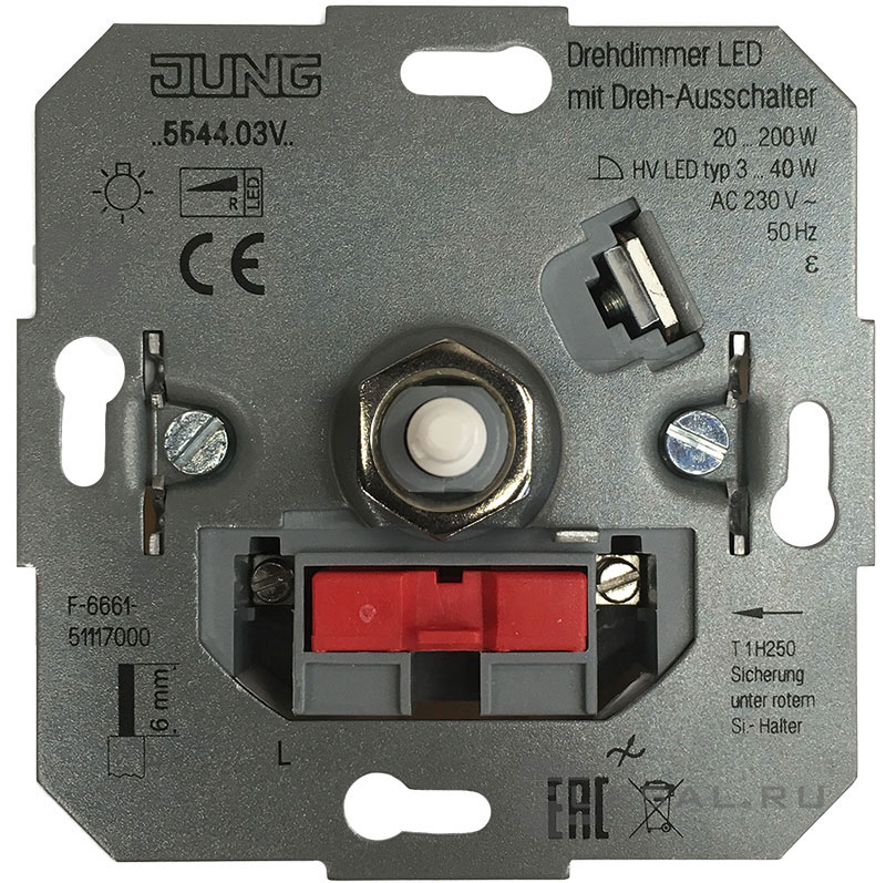 Механизм светорегулятора (диммера) 20-200 Вт/ВА, для LED 3-40 Вт A VIVA, A creation, A 550, A flow, AS 500, SL 500, ECO profi и ECO profi Standart, ECO profi design (ECO Profi Deco), поворотный, лампы накаливания и галогенные 220В (R), диммируемые лампы LED 220В (LEDi тип L)