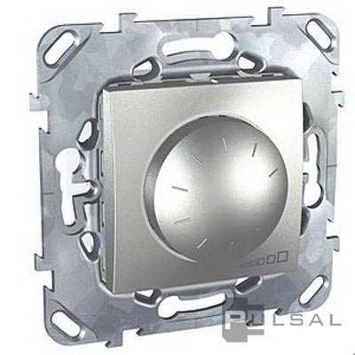 Светорегулятор (диммер) 40-400 Вт/ВА Unica Quadro, Unica Top, Unica Class, поворотно-нажимной, с возможностью управления с 2-х мест, лампы накаливания и галогенные 220В (R), лампы с электронным (емкостным) трансформ.(C), цвет - алюминий