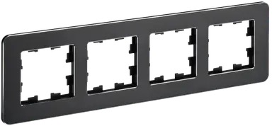 Рамка BRITE, 4 поста, цвет - черный матовый, стекло