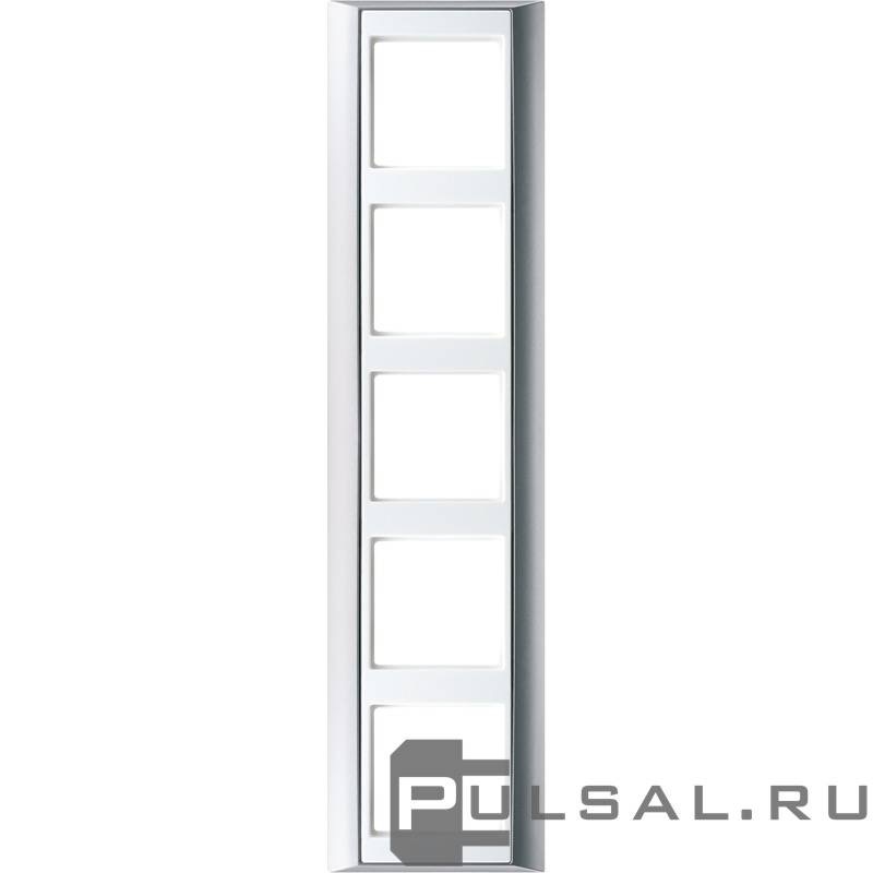 Рамка A plus, 5 постов, цвет - алюминий, белый, пластмасса