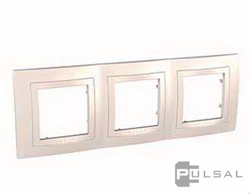 Рамка с декоративным элементом Unica Базовая, 3 поста, цвет - бежевый, бежевый, пластмасса