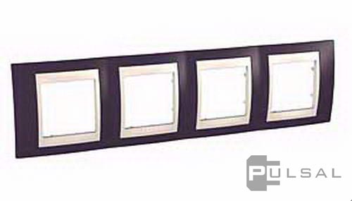 Рамка Unica Хамелеон, 4 поста, цвет - хром, бежевый, металл