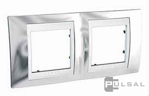 Рамка Unica Хамелеон, 2 поста, цвет - хром, бежевый, металл