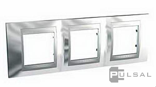 Рамка Unica Top, 3 поста, цвет - хром, алюминий, металл