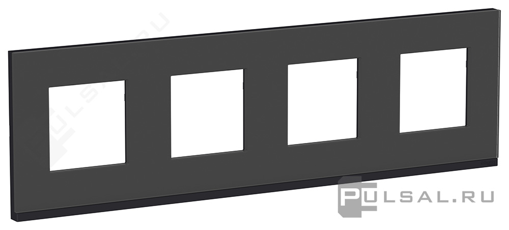 Рамка Unica New Pure, 4 поста, цвет - черное стекло, антрацит, стекло