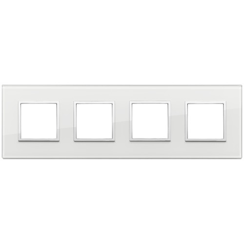 Рамка Eikon EVO, 4 поста, цвет - белый бриллиант, хром, стекло