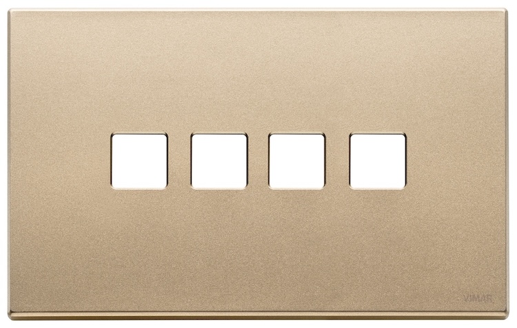 Рамка-накладка для выключателя Flat, на 4 механизма Eikon EXE Flat & Tondo, 4 модуля, цвет - золото матовое, металл