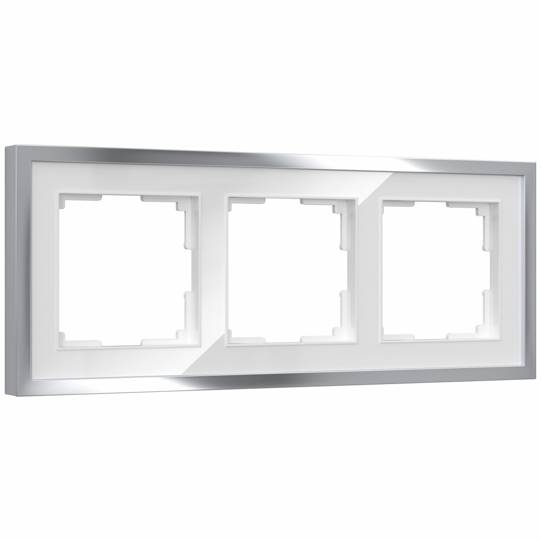 Рамка Baguette, 4 поста, цвет - серебро, белый, металл, стекло акриловое