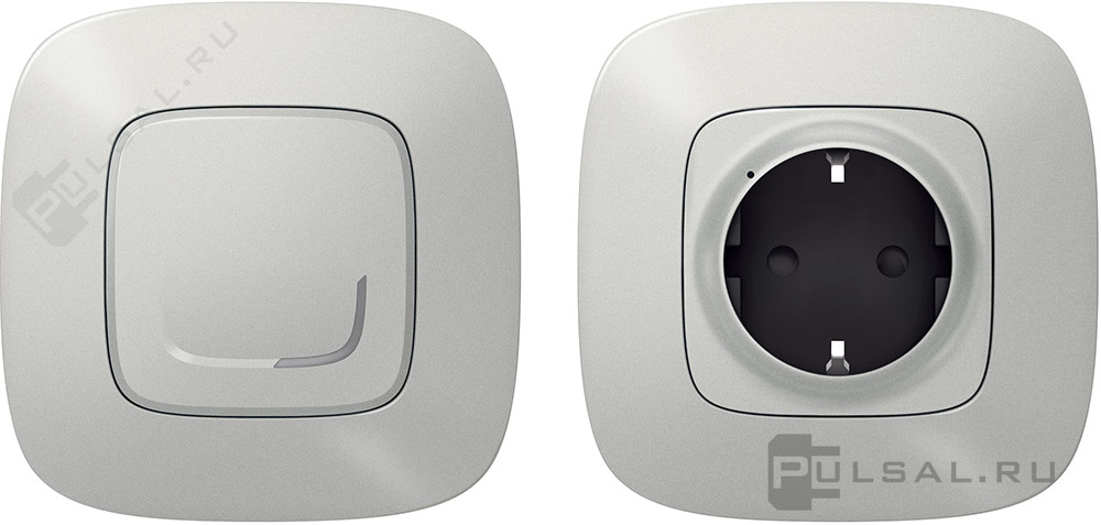 Коллекция умных устройств Valena Allure with NETATMO. Пакет для управления бытовыми электроприборами. Умная розетка 2К+З 16А 230В + умный беспроводной 1-клавишный выключатель. Цвет Алюминий