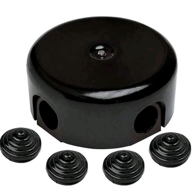 Распределительная коробка диам.90 мм (4 кабельных ввода в компл.) Ришелье, Лизетта, для полых стен и гипрока, для сплошных стен, цвет - черный