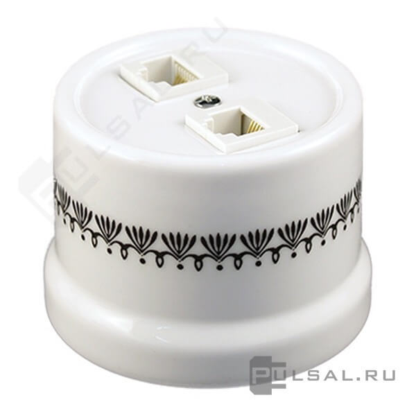 Розетка компьютерная RJ45 Cat.5 (UTP) Лизетта Декор, двойная, цвет - белый - декор d5/1