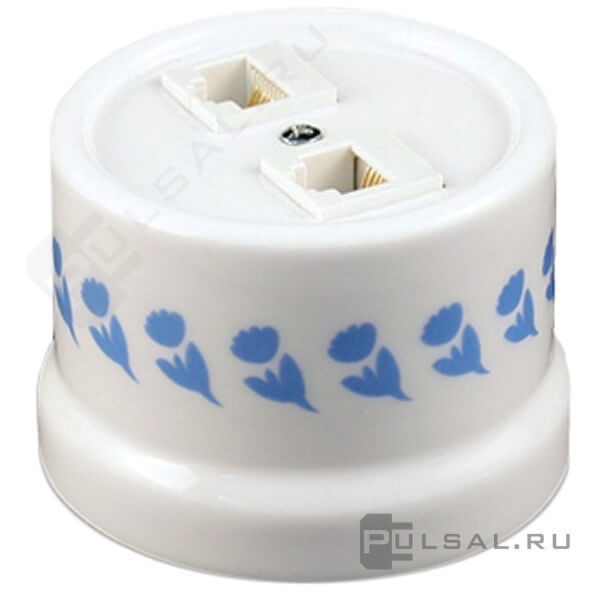 Розетка компьютерная RJ45 Cat.5 (UTP) Лизетта Декор, двойная, цвет - белый - декор d7/3