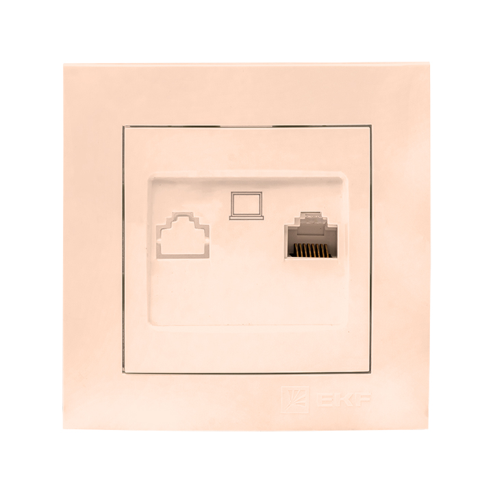 Розетка компьютерная Валенсия, двойная, цвет - кремовый