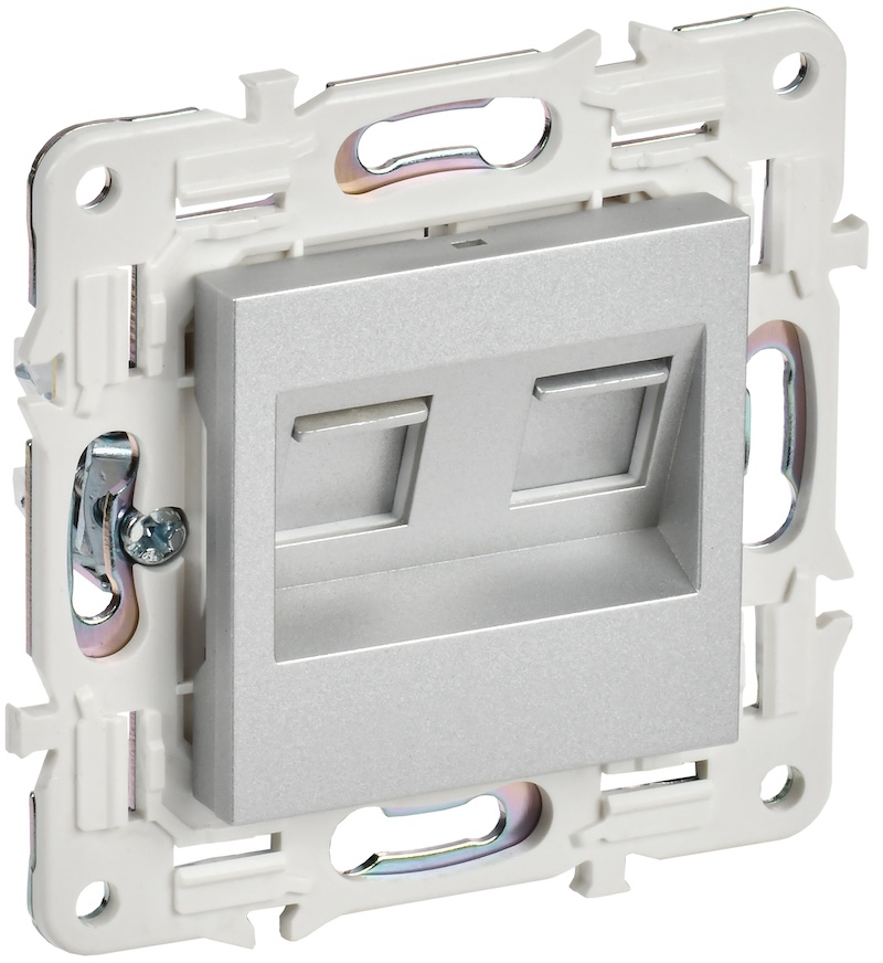 Розетка компьютерная RJ45 Cat.5e Skandy, двойная, цвет - серебряный