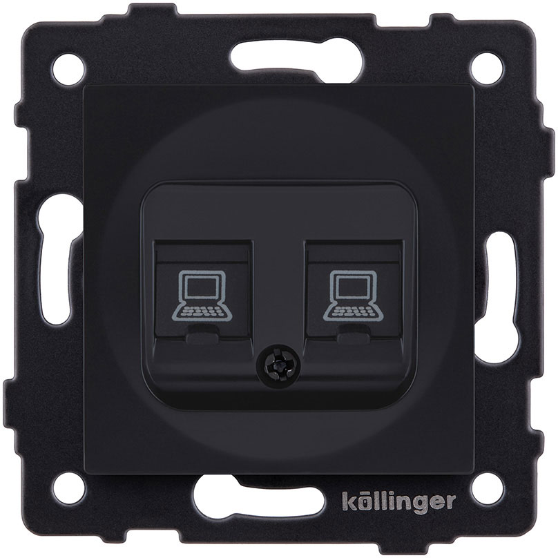 Розетка компьютерная 2 x RJ45 Cat.6 Aspekt, Eleganz, Reflex, двойная, цвет - Чёрный матовый