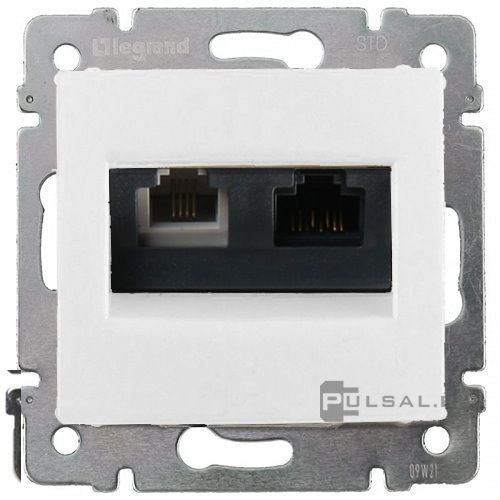 Розетка компьютерная RJ45 Cat.5e (UTP) с монтажными лапками Valena, двойная, цвет - белый