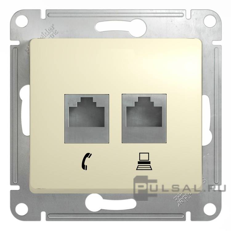 Glossa, со шторками, с заземлением, одинарная, безвинтовые клеммы, цвет - бежевый