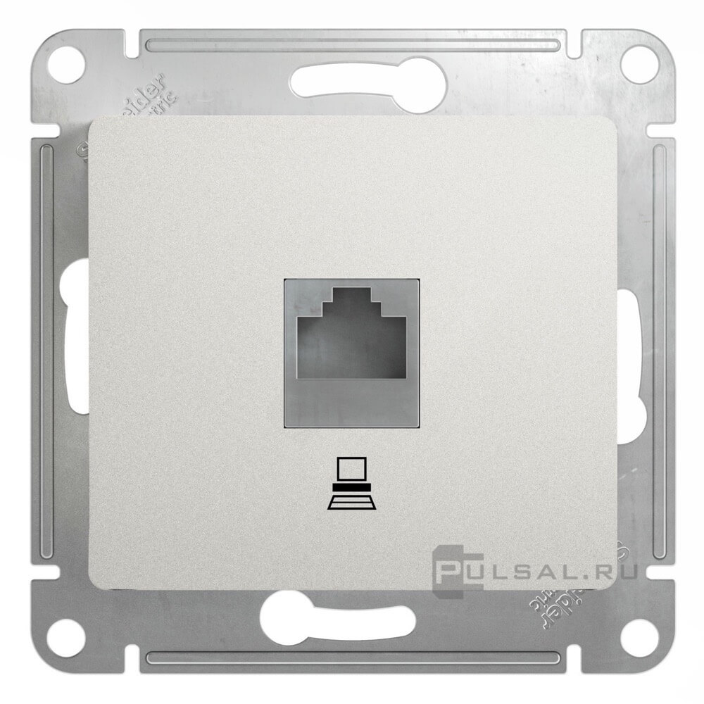 Glossa, со шторками, с крышкой, с заземлением, одинарная, винтовые клеммы, цвет - перламутр